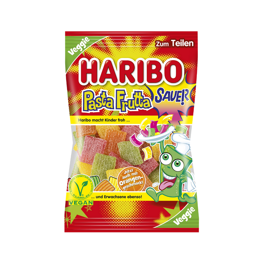 Zutaten: Zucker; Glukosesirup; Stärke; Feuchthaltemittel: Sorbitsirup; Weizenmehl; Säuerungsmittel: Citronensäure, Äpfelsäure; Emulgator: Mono- und Diglyceride von Speisefettsäuren; Säureregulator: Natriumhydrogenmalat; Karamellsirup; Aroma; Holunderbeerextrakt; Frucht- und Pflanzenkonzentrate: Schwarze Johannisbeere, Holunderbeere, Aronia, Traube; Farbstoffe: Kurkumin, Kupferkomplexe der Chlorophylline.