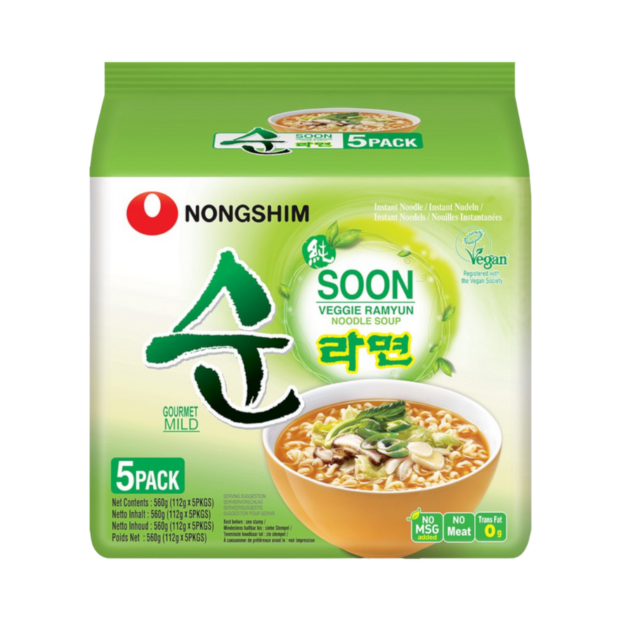 Noodles 89%: Wheat Flour, Potato Starch, Palm Oil, Salt, Acidity Regulators (E501, E500, E339), Anti-Oxidant (E306), Seasoning (Yeast Extract, Soybean, Garlic, Wheat Starch), Green Tea Extract, Colour (E101). Seasoning Powder 9%: Seasoning (Hydrolysed Vegetable Protein (Soy), Maltodextrin, Yeast Extract, Soybean, Salt, Garlic, Wheat Flour), Salt, Spices (Maltodextrin, Garlic, Red Chilli Pepper, Black Pepper), Sugar, Flavour Enhancers: E627, E631, Shiitake, Acid: E330. Vegetable Flakes 2%: Pak-Choi, Carrot.